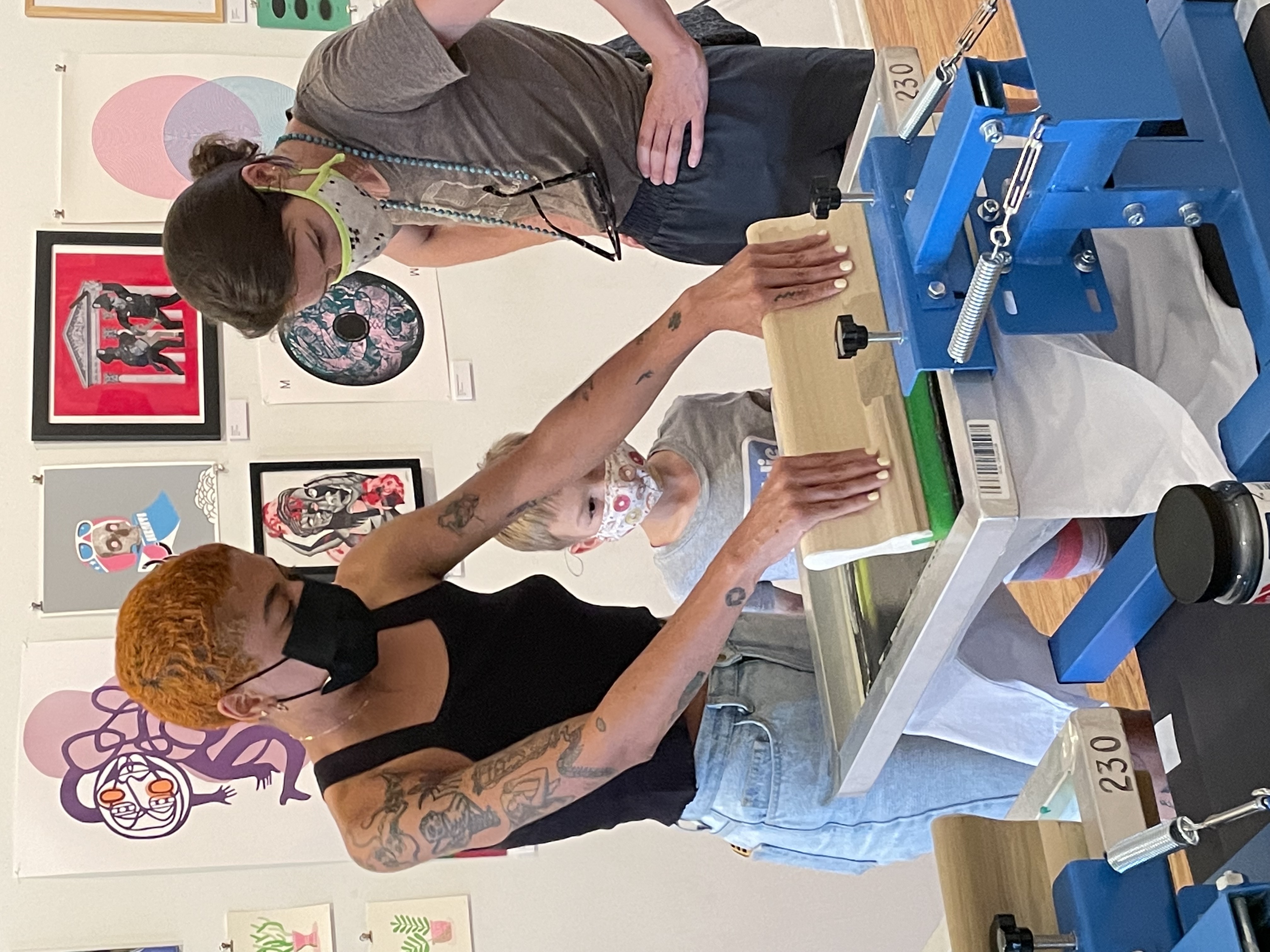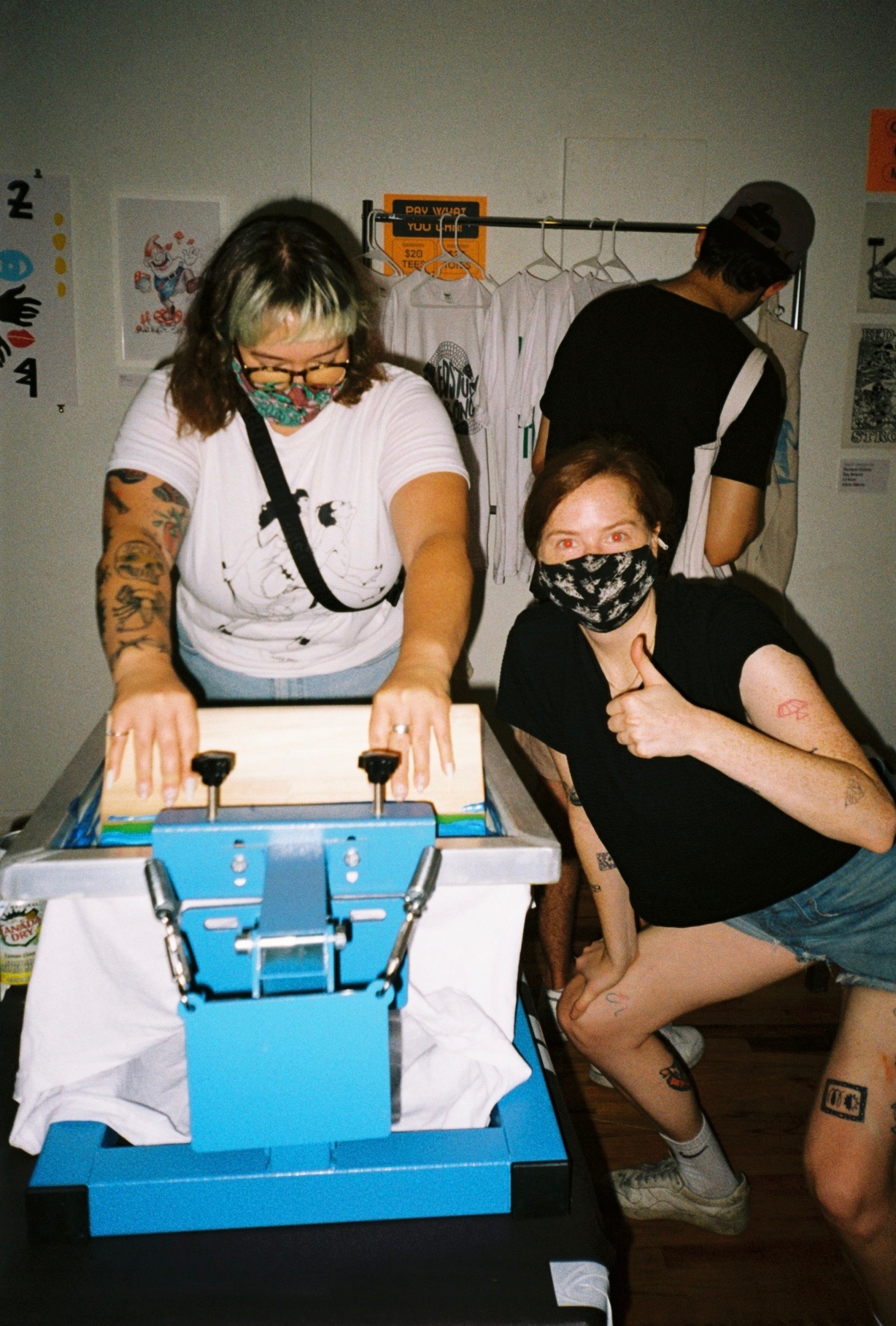 Hosted at The Living Gallery in Bed Stuy, Merch for Mutual Aid was a magical day of printing, looking at art, and hanging out. Four local artists created original designs to be printed on tees and totes, and 45 additional artists donated pieces to be displayed and sold at the event. We were able to raise over $4.5K for Bed Stuy Strong to support their community efforts.