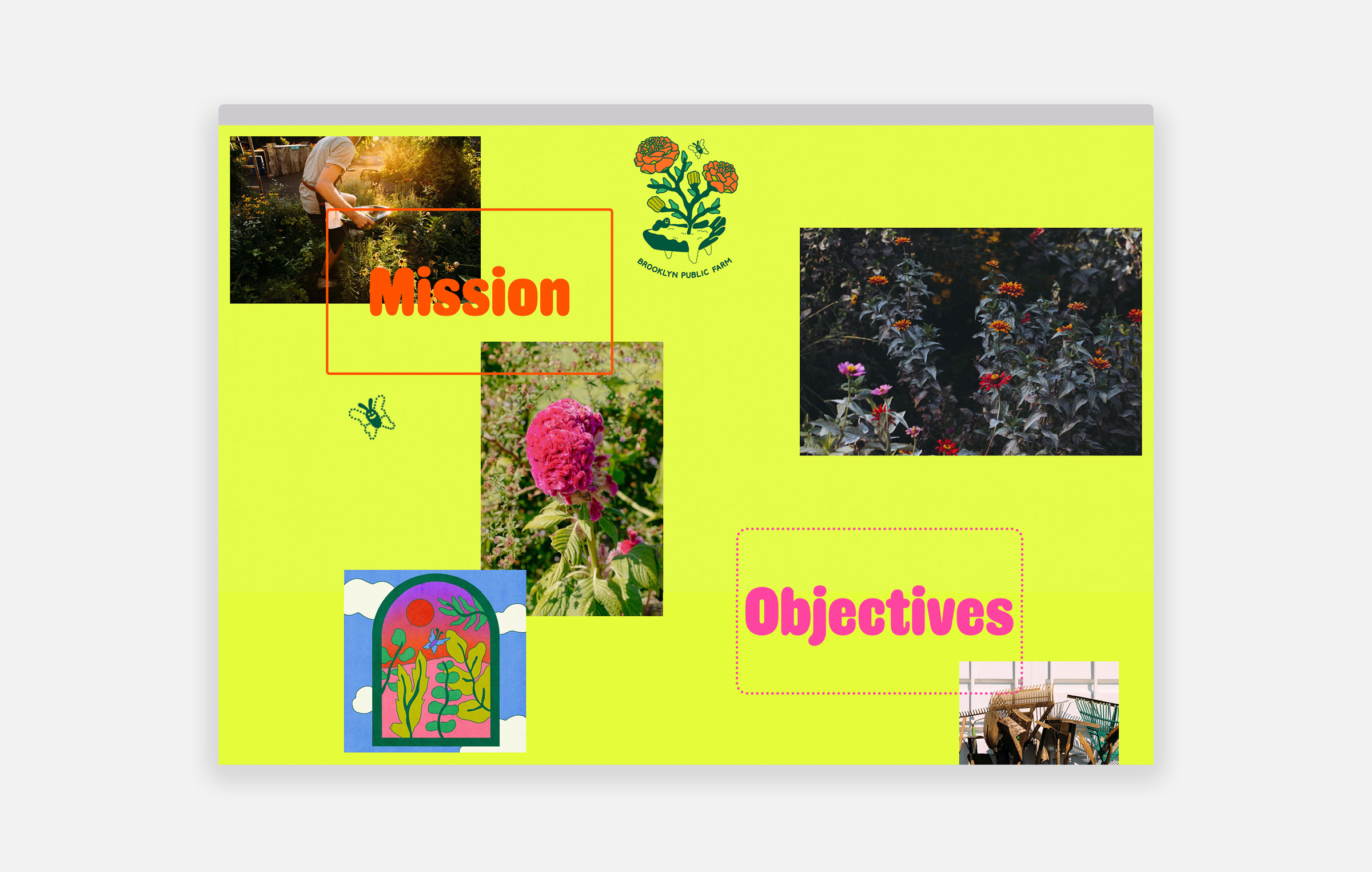 Identity and web design for Brooklyn Public Farm — a garden and community center by the folks behind North Brooklyn Farms. Logo and illustrations by Sam Shin.